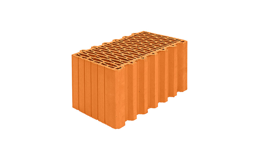 Блок керамический поризованный Porotherm 44 используется в строительстве несущих наружных и внутренних однослойных стен. Толщина стены составит 400 мм. Блоки соединяются между собой структурой «паз-гребень», при этом вертикальный шов не заполняется кладочным раствором. Не требует дополнительной теплоизоляции.