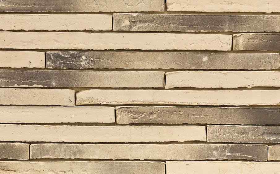 Terca Wasserstrich Special Grijswit (Arctic Geflammt) – бельгийский ригельный кирпич ручной формовки бежево-коричневого пестрого цвета. Размер 500х100х40 мм. Свою поверхность с потертостями и грубые, шероховатые края кирпич получил благодаря обработке водой в процессе производства (wasserstrich).