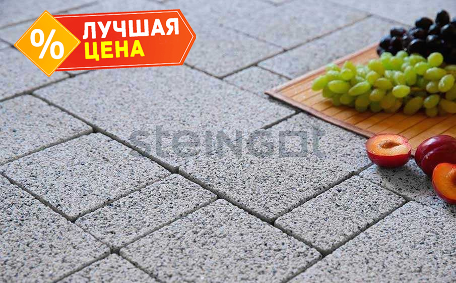 Плитка тротуарная Steingot Премиум, Бавария, дробеструйная обработка, Bianco Nero, толщина 60 мм