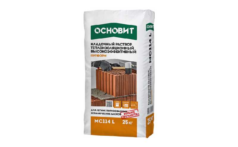 Высокоэффективный теплоизоляционный кладочный раствор ОСНОВИТ ПУТФОРМ MC114 L предназначен для кладки стен из материалов с повышенными теплоизоляционными свойствами, а именно из лёгких пустотелых керамических блоков и блоков из бетона на пористых заполнителях.